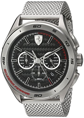 GRAN PREMIO CHRONO COLLECTION: For the casual and stylish man, the classic Gran Premio chronograph comes in a brand new versions with a metal wrist strap and a Shield logo on the dial. The bold texture in carbon fibre inspired by the single-seater racing car is offset by the elegant design of the metal strap, for a model that combines style and racing spirit.Feature