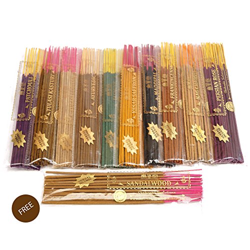 FREE Sandalwood Variety Pack in Herbal Treat Agarbatti | Frankincense | Nag Champa | Patchouli | Jasmine | Persian Rose | Ayurvedic | Maddipal | Kesar Saffron | Tulasi Lobhan | Tulasi Kasturi | Incense Sticks Set of 10 Fragrances