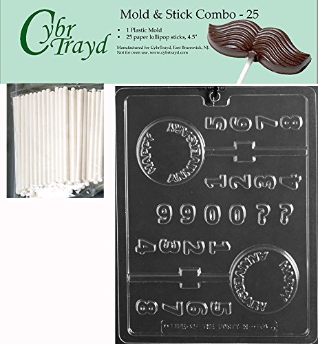 CybrTrayd 45St25-W074 "Happy Anniversary with Numbers Lolly" Chocolate Candy Mold, Clear