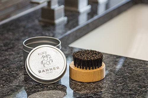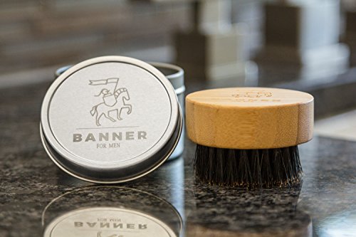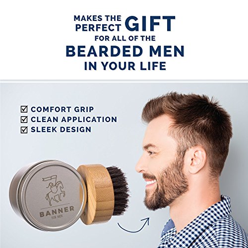 Premium Beard Oil Brush for Men - 100% Natural Wild Boar Bristle with Wood Handle for Grooming Facial Hair; Includes Quality Aluminum Gift Box