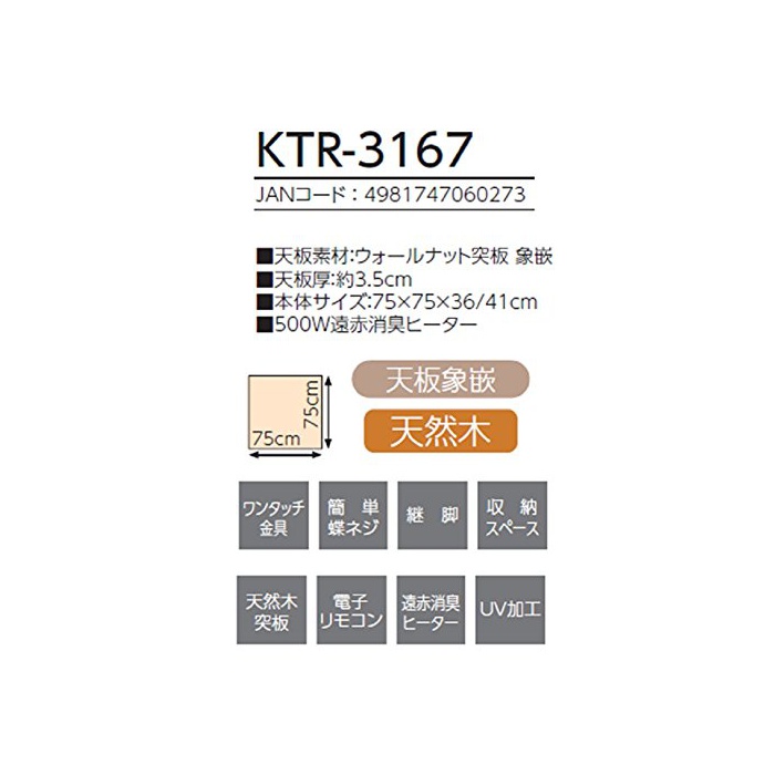 원본상품명: コイズミ 家具調コタツ 象嵌シリ?ズ 75×75cm KTR-3167