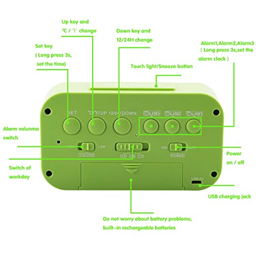 Alarm Clock Operated Built-in rechargeable battery, Powered by USB Cord (The adapter Is NOT Included), Can be connected to the computer or mobile phone Adapter on the charge, convenient and quick.