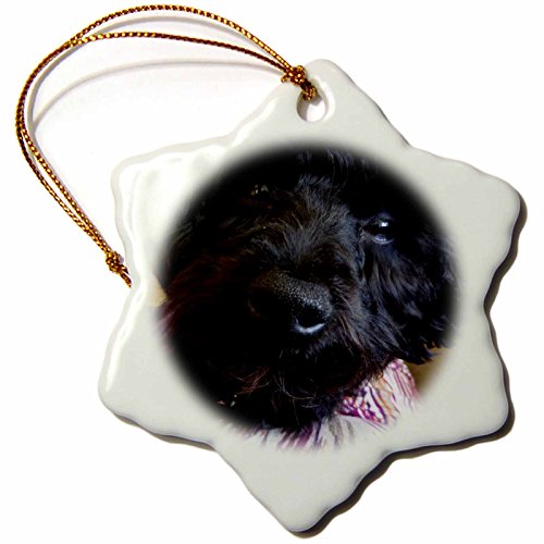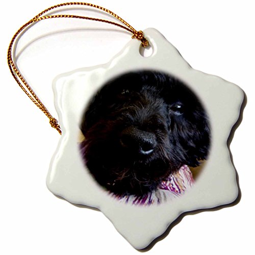 3dRose orn_59227_1 Curious Yorkiepoo Puppy Looking at a Camera Snowflake Porcelain Ornament, 3-Inch