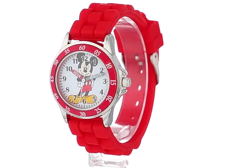 Disney Kids' MK1239 Time Teacher Mickey Mouse Watch with Red Rubber Strap