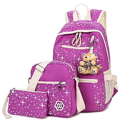 -. Title : Cute Lightweight Canvas Backpack Set 3 Pieces Bookbag School Backpack for Girls