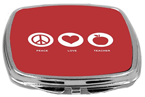 Rikki Knight Peace Love Teacher Design Compact Mirror, Red, 2 Ounce