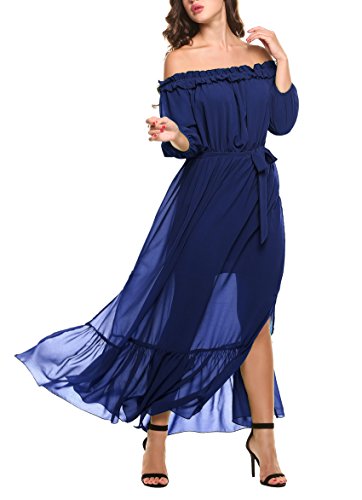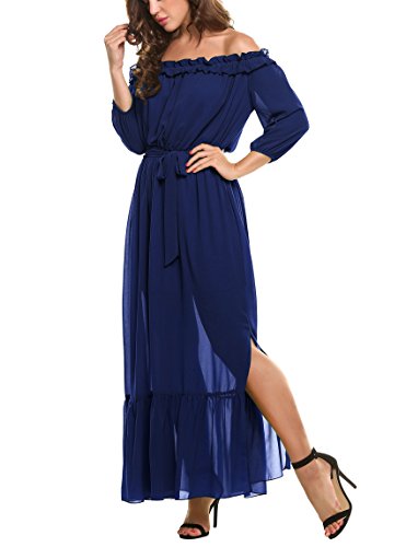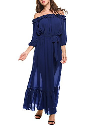 Feature:Off shoulder with ruffles, 3/4 sleeve, inner lining.