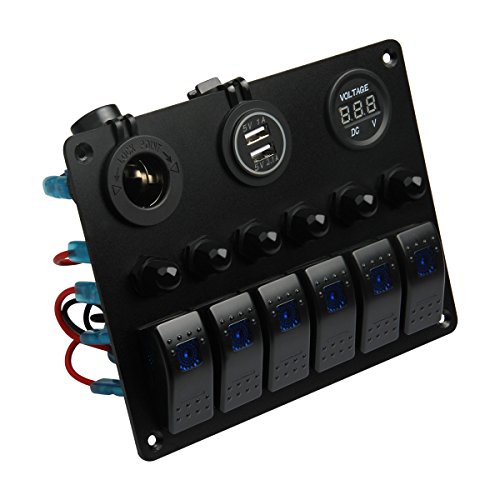6 LED illuminated rocker switch with rubber seals for outdoor and marine task, cigarette Socket & dual USB power charger fullfill all kinds of charging needs.