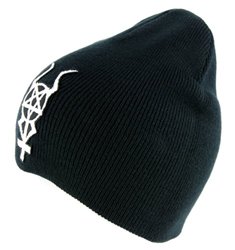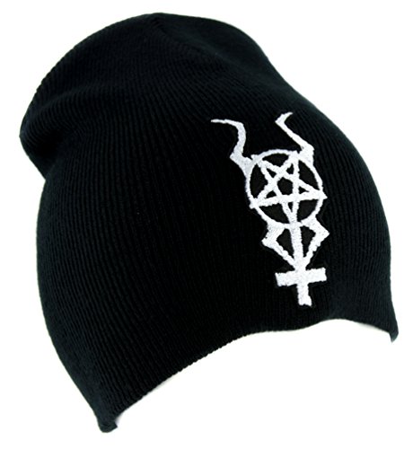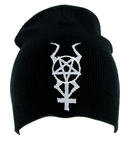 Horned Pentacross Beanie Knit Cap Occult Clothing Inverted Pentagram Cross Horns up