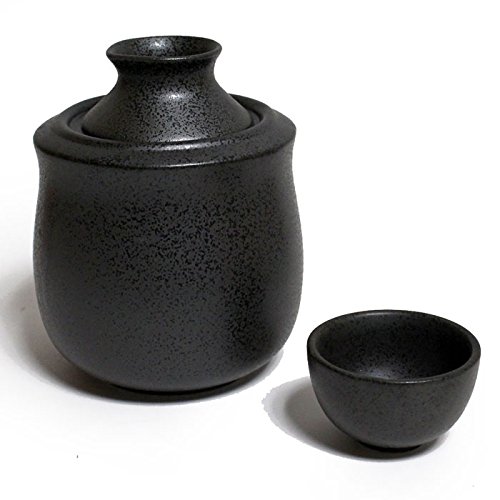-. Title : 保温器付き酒器(大)黒結晶 盃(大)1個付
