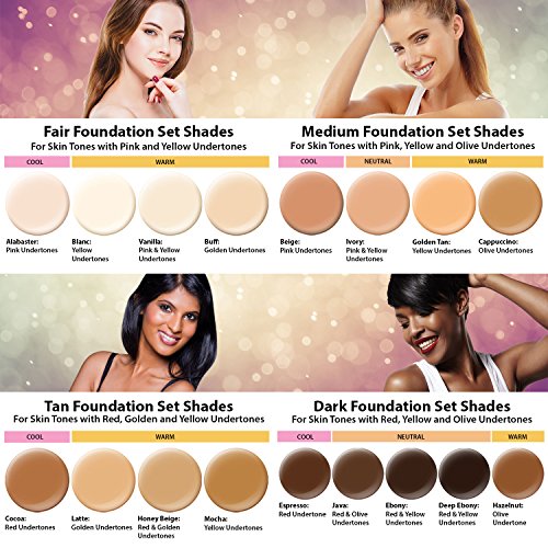 - A Master Set of all 17 Belloccio foundation color shades. Includes all the colors from each of the 4 Belloccio foundation sets (fair, medium, tan & dark), to assure a perfect match.