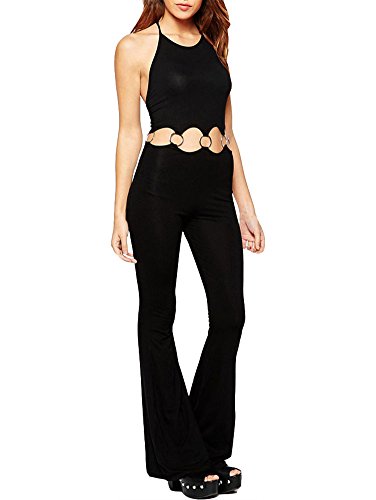 -. Binding : Apparel -. Brand : HUUSA -. Department : womens -. Feature : One Size Fits US Size XS-M / Cutout Waistline with O-rings / Open Back and Sleeveless / Style:a cropped halterneck bodice and elegant wide-leg pants / Occasion: night club, cocktail, formal, summer, party dresses -. ProductGroup : Apparel -. ProductTypeName : PANTS -. Title : Fashion Womens Black Sexy Metal O Ring Detail Flared Jumpsuits
