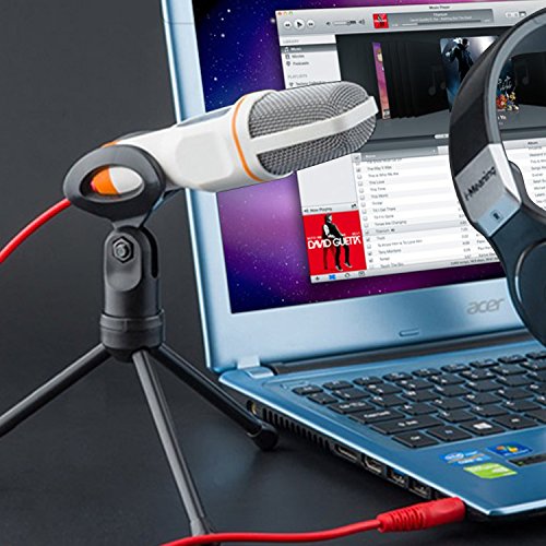 3.5mm Plug Professional Condenser Sound Microphone Clip with Stand and Clip and 2.0m Cable for PC Laptop Skype Facetime Youtube Cortana Chatting Recording Singing on Internet or Karaoke, White Overview: Whether you are singing lover on the Internet or Karaoke, or the host of a popular podcast, or just someone looking to chat over Skype Cortana, you need such a microphone that allows you to be heard louder and clearer.