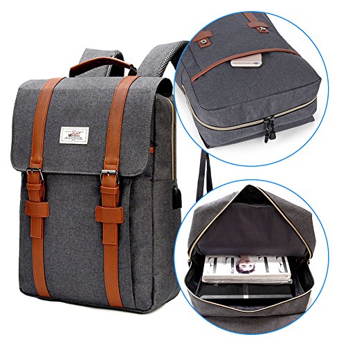 Modoker Vintage Laptop Backpack with USB Charging?Port?- College backpack?Fits 15.6"?Laptop Size: 11.4"L x 15.7"H x 5.7"W, Suits for Laptop up to 15.6" Capacity :25 L Package includes: Modoker Laptop Backpack x 1, USB cable?x 1 Backpack Usage:?Laptop backpack, school backpack, travel backpack, rucksacks backpack, messenger bags etc. ? ?Outdoor USB charging backpack ??With built-in USB charging port?outside and charging cable inside, Modoker?USB backpack offers a?convenient?way of charging your phone or other electronic devices?when walking. High-capacity Rucksack Backpack ??11.4x 15.7?x 5.7?inch?Backpack with Laptop compartments?holds Laptops up to?15.6?Inch.?This backpack offers?you with lots of space. It easily fits your laptop, notebook, water bottle, umbrella, shoes and clothes.? Comfortable on your back ? Made of quality 600D Nylon fabric, you will feel Modoker Laptop Backpack lightweight, soft durable. Adjustable and padded shoulder straps fit your shoulder. ??Real comfortable with Modoer Laptop Backpack on your back. 0 |
