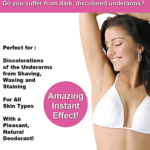 Get ready for bikini season or wearing that revealing dress with our world-famous, revolutionary, South Beach Skin Brightening Roll-on for UnderarmsTM! If you suffer from embarrassing dark or discolored underarms, you are not alone. Millions of women have this problem. Our Roll-on for Underarms is the ultimate in safe, gentle and effective natural use for the underarm areas. Our exclusive Insta-BriteTM technology provides an instant brightening effect with each application, giving your skin a brighter, more youthful glow from the first day you use it. With continued use, the active ingredients work with your skin to provide long lasting results. Unlike cheap drug store skin lighteners or bogus imitators, our specially-formulated Roll-on for Underarms is very gentle and does not contain any potentially harmful or irritating chemicals such as Kojic Acid or Hydroquinone.