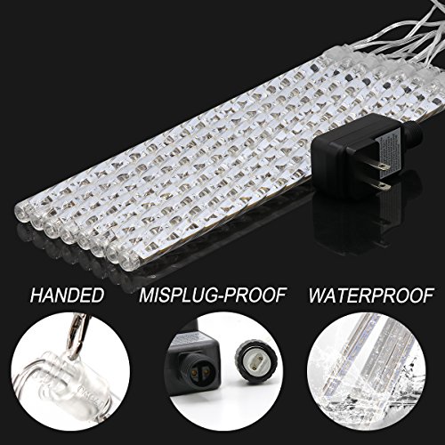 OMGAI Waterproof Meteor Shower Rain Lights - 30cm 8 Tubes Drop Icicle Snow Falling Raindrop Cascading Lights for Wedding Party Christmas, Shine Blue (UL Listed Plug)