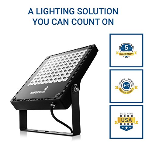 - ✔ SUPER BRIGHT - This Hyperikon LED court light provides great light distribution in rural areas, gardens, dark backyards, or in commercial settings such as billboard lights or outdoor construction lighting.