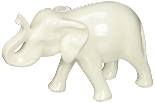 - This ceramic elephant has his trunk raised up, symbolizing good luck