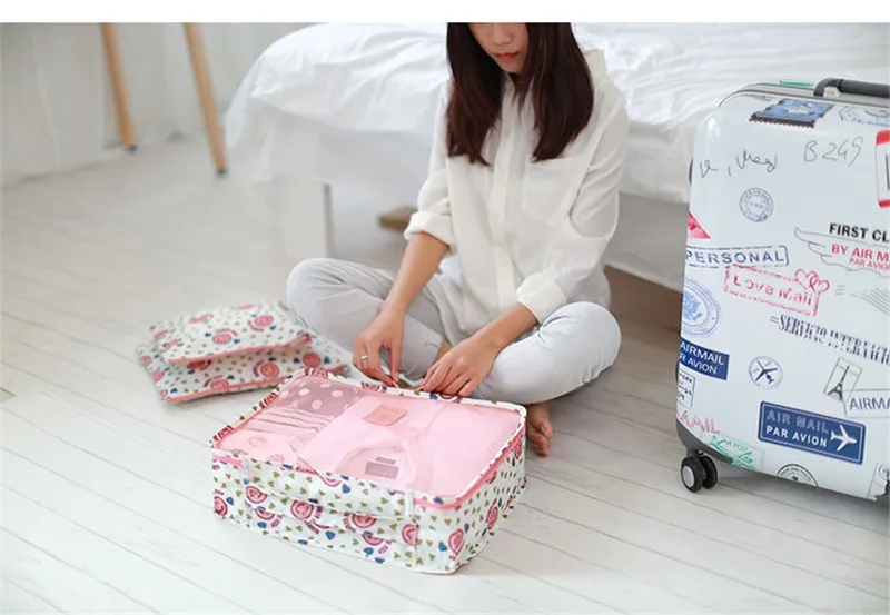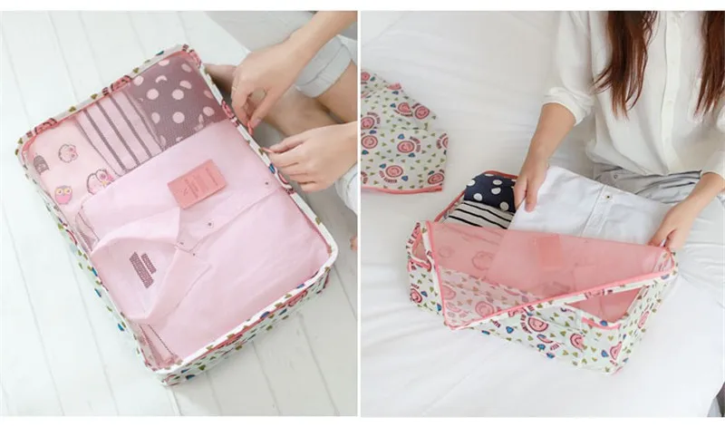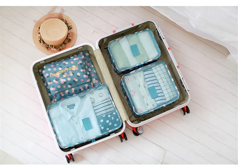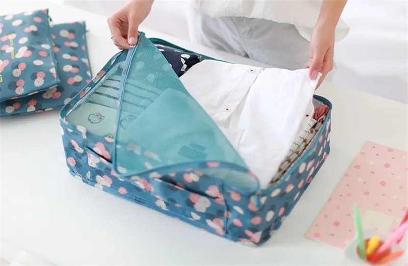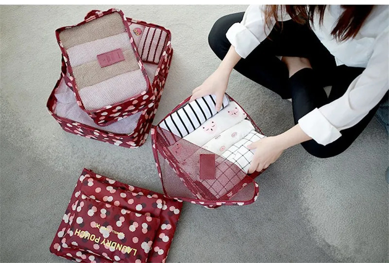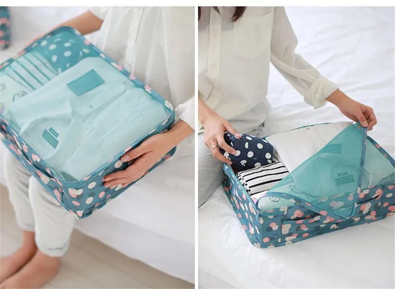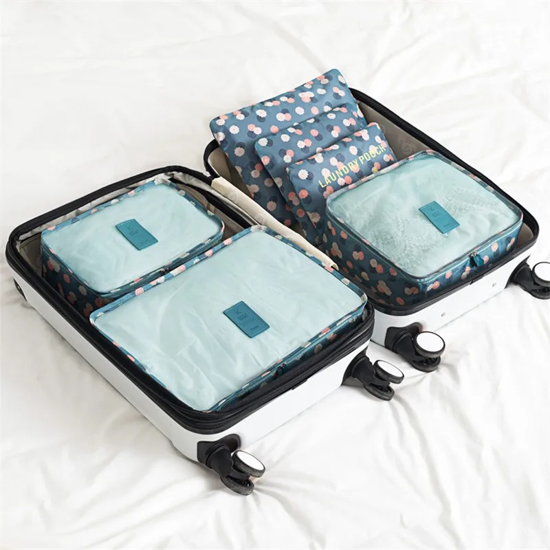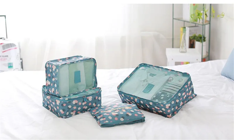 6pcs/set Waterproof Women Travel Bag Organizer Nylon Mesh Bag Men Packing Cubes Luggage Travel Bags Clothes Shoes Pouch Storage Bag?