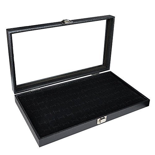 Glass Top Black Cufflinks Jewelry Showcase Storage Organizer Display Case Box