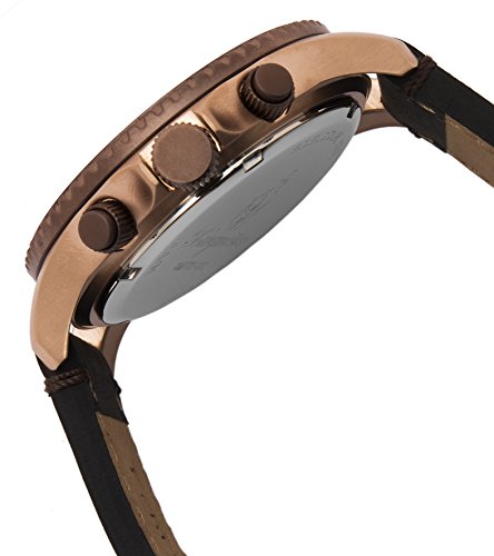 Burgmeister gent's chronograph Vintage BM532-922, case stainless steel IP rose gold, rotating bezel IP brown, dial black, indexes rose gold, main hands rose gold fluorescent, date- and 24 hour display, stopwatch function, leather strap black with stainless steel buckle IP rose goldFeature