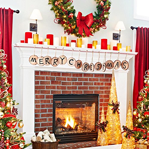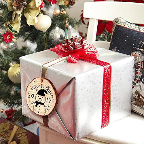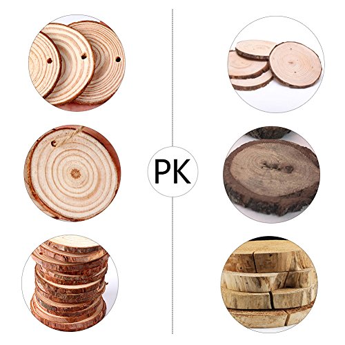 AerWo 50pcs Hanging Wood Slices + 50pcs Twines, Unfinished Natural Round Wood Slices DIY Craft Rustic Wedding Decoration Christmas Tree Ornaments