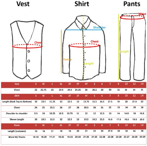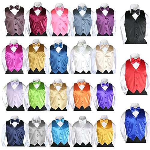 -. Feature : White shirt / Black pants / Royal blue satin bow tie / Royal blue satin vest / Our store carries 23 color in this style: Black, Brown, Burgundy, Coral, Dark Gray, Eggplant, Fuchsia, Gold, Green Teal, Ivory, Champagne, Lilac, Lime, Mustard, Navy, Orange, Purple, Red, Royal Blue, Silver, Turquoise, White, and Yellow. If you are interested in other color, please visit our store or email us.
