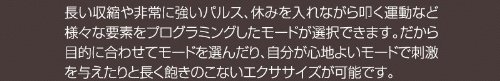 We have 8 programs, such as long contraction, very strong pulse, exercise to hit while taking a break.