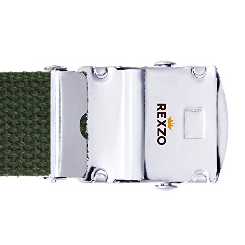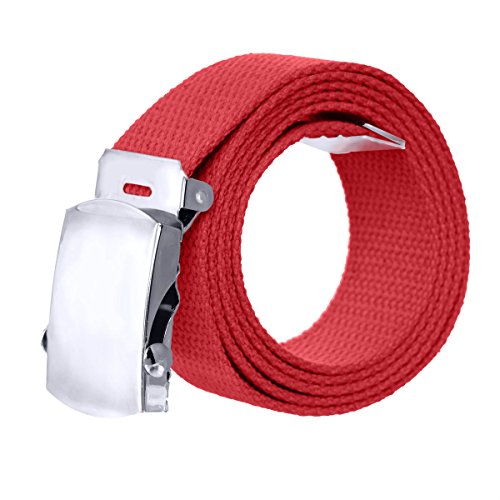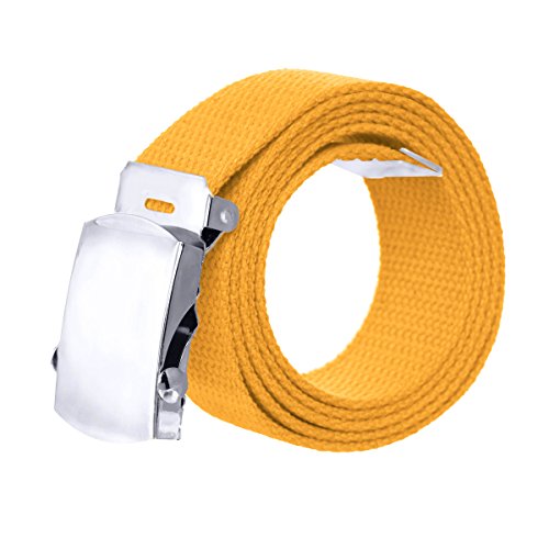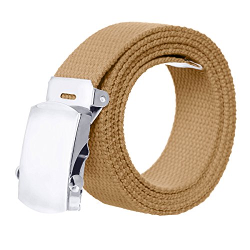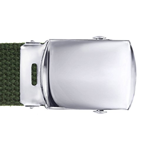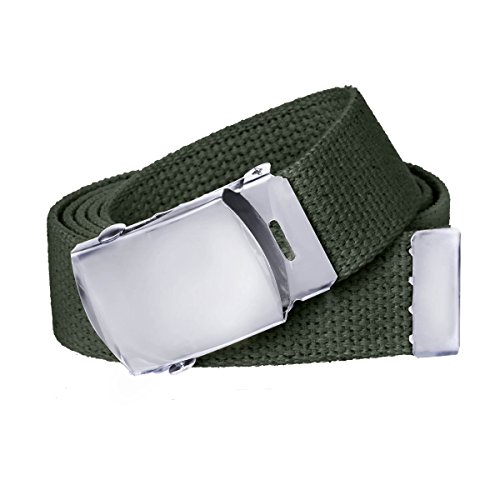 Take a rugged approach to accessorizing with this military style canvas belt. With a 100% cotton canvas body and a silver buckle and tip, it's a high quality, comfortable, and durable men's accessory with a natural look and feel. Simple to snap on and off and easy to adjust at any time, it's also incredibly convenient to wear. Suitable for a waist size of up to 44 inches, it can be further adjusted for smaller waists by removing the buckle and trimming the belt to your desired length.Feature
