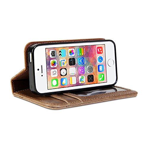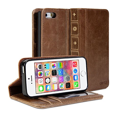 Pep up Your Device! GMYLE Book Case Vintage for iPhone 5 is made with hard covers in distinguish-looking, high quality crazy horse pattern leather with a strong, thick spine. You can disguise your iPhone 5 as a book, bringing a stylish vintage look and also converting your iPhone 5 for hands-free viewing. The soft, velvet interior not only keeps damage at bay, but accentuates the sleek design of your iPhone 5. Featuring card slots and a money pocket, this convenient design is perfect for those on the go. Compatible with iPhone 5 / iPhone 5s. Note: The device is not included in the package