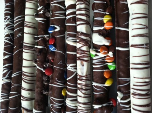 The tasty combination of salty and sweet makes these gourmet pretzel rods a delicious treat for holiday entertaining or anytime. Each reusable plastic tub contains 20 individually wrapped pretzels dipped in chocolate then covered with swirls of more chocolate, dusted with cocoa or sprinkled with chocolate candies. Great to have on hand for spur-of-the-moment gift giving!