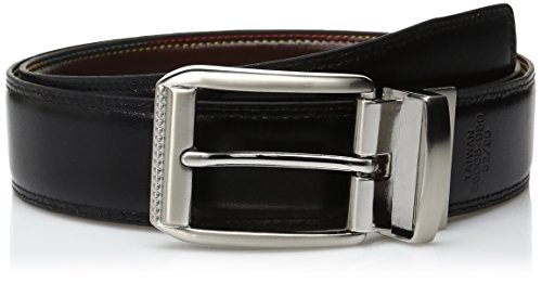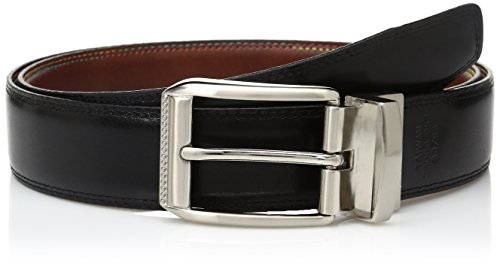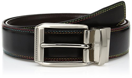 -. Feature : 35mm width / Feather -edge for a refined look / Brushed nickel twist reversible buckle / Rainbow stitched black leather top reverses to tonal-stitched solid color strap / We recommend ordering a size up from your regular waist size (ex. Size 34 pant , order size 36 belt)