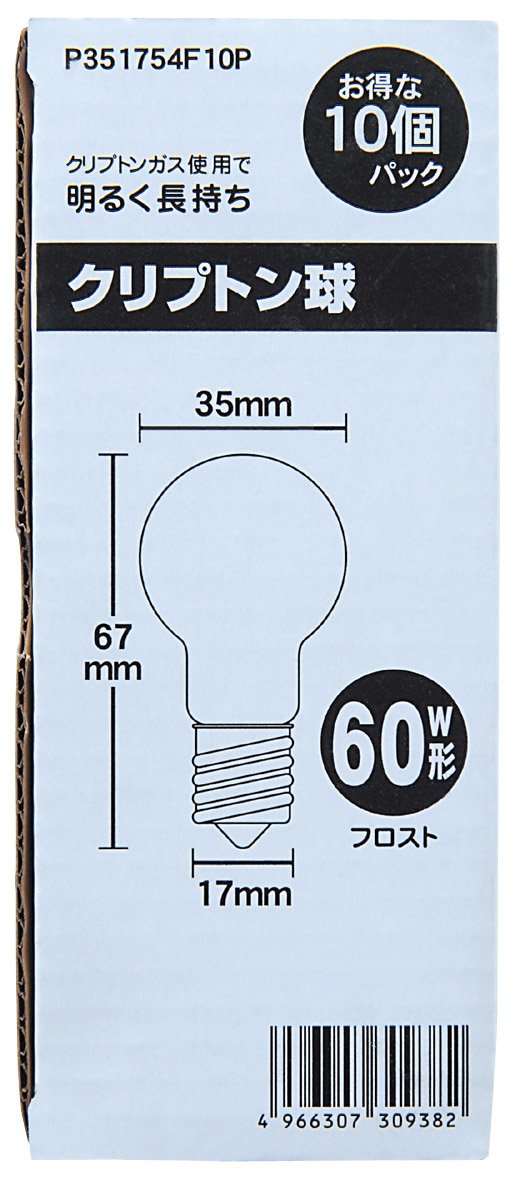 ● Package form: BOX ● Type: 60W ● Rated voltage (V): 110 ● Power consumption (W): 54 ● Rating life (h): 2000 ● Base: E17 size: H67mm × diameter 35mm Weight: 13g Color: Frost