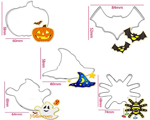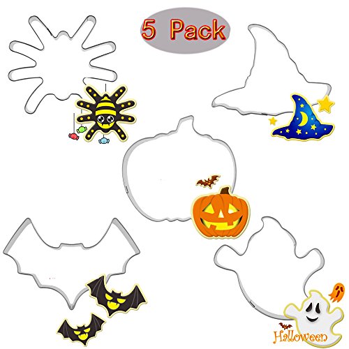 (Set of 5)Halloween Trick or Treat Cookie Cutter Set,Pumpkin,ghost,Bat,spider and Wizard Hat