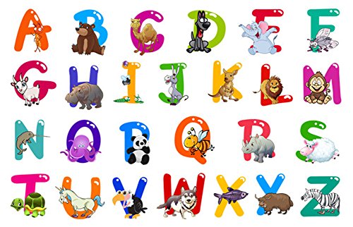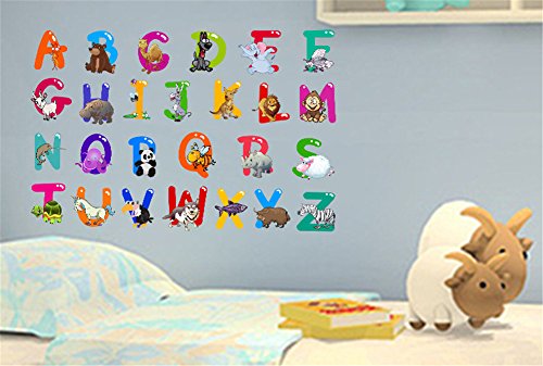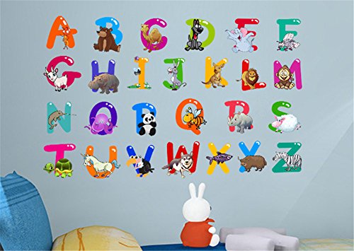 Nursery Educational Wall Stickers - Animal Alphabet Baby Decorative Peel and Stick Wall Art Sticker for Daycare School Kids Room Decoration Decals