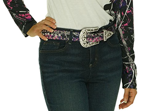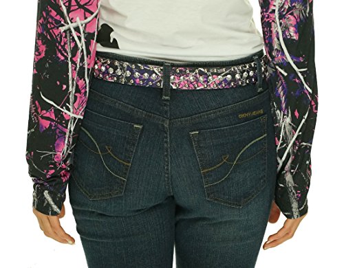 -. Binding : Apparel -. Brand : Muddy Girl -. Department : womens -. Feature : Western Buckle Belt in the trendy Muddy Girl Camo P.R.Int / This belt is embellished with rhinestones and studs all over. / 2" Width Belt in a Synthetic Leather / Measurements without Buckle: Small - 40"; Medium - 35"; Large - 43"; X-Large - 47" -. NumberOfItems : 1 -. PackageQuantity : 1 -. ProductGroup : Beauty -. ProductTypeName : ACCESSORY -. Title : Monte Vista Muddy Girl Studded Belt