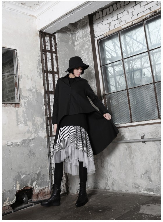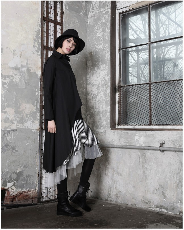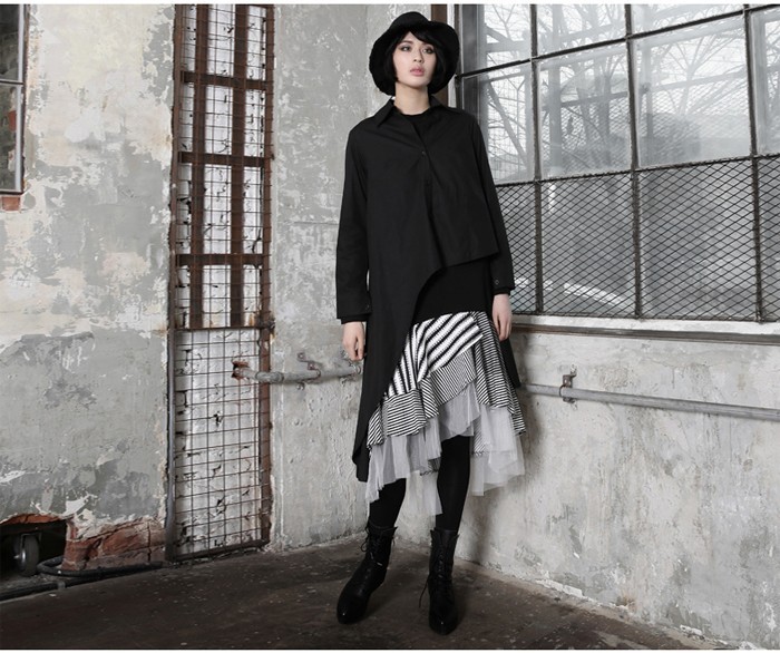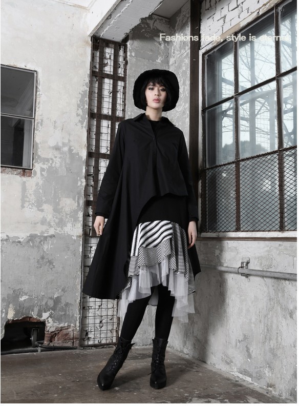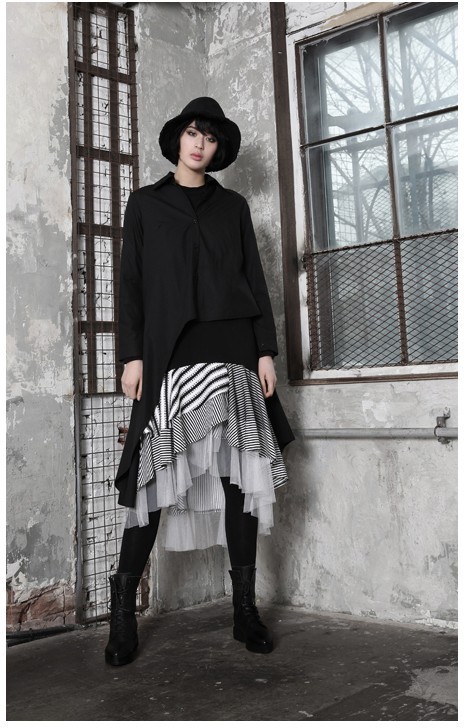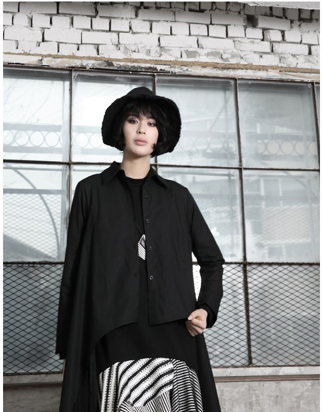 商品名:シャツ レディース アンバランス 個性的 長袖 モード系 秋 冬 2017 モード系 個性的 40代 ファッション