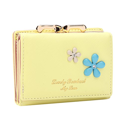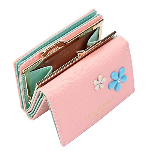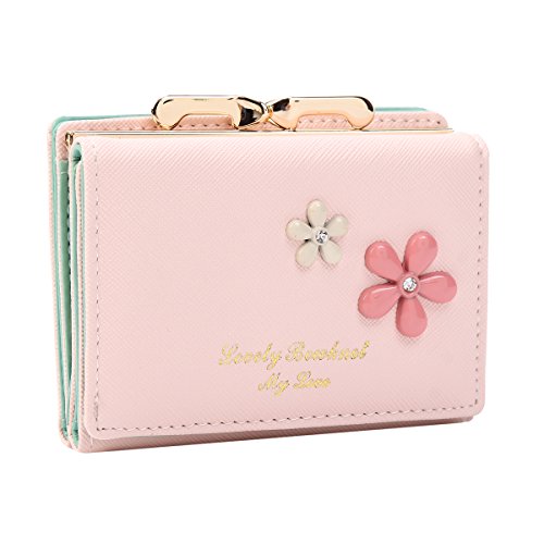 Product Description Organize your essencial items in the lovely wallet.It is made of faux leather and features a kiss-lock closure and flowers design on the front.A snap closure on the front includes 1 photo window,7 card slots and 1 bill site.It also has 1 photo window and 4 card slots with a snap closure on the back.A middle kiss-lock pocket is convenient for your coin or other small items.Measurement is app 10.5x7x3.5cm(4.13x2.75x1.38inch). 0