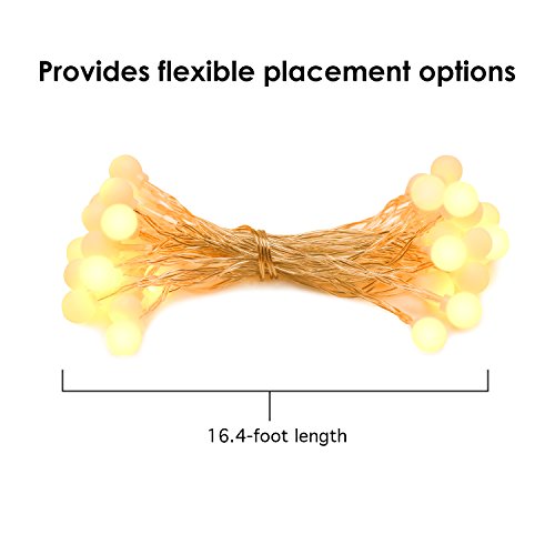 MoKo Globe String Lights, 5m/16ft 40 LED Waterproof Ball Lights, 2 Lighting Modes, Battery Powered Fairy Light for Halloween Christmas Weddings Birthday Family School Parties Décor - Warm White