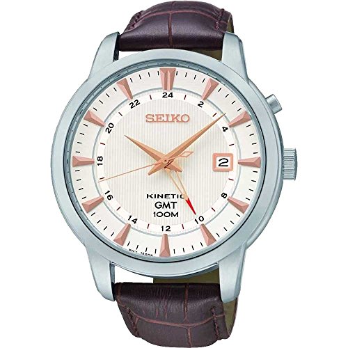 -. Title : Seiko SUN035P1 Men's Kinetic Gmt,Steel Case & Brown Leather,100m WR,SUN035