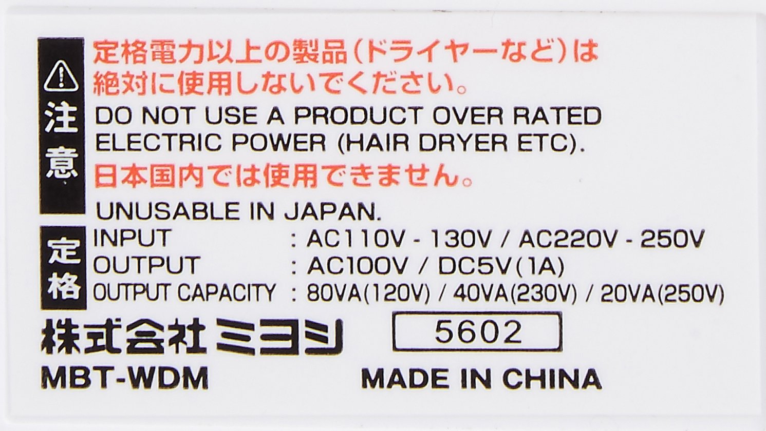 Japan electrical products can be used worldwide in response to voltages from 110 to 130 V · 220 to 240 V · 250 V * This product can not be used in Japan ※ Electric appliances exceeding the rated capacity of dryers, irons, laptops etc. and USB