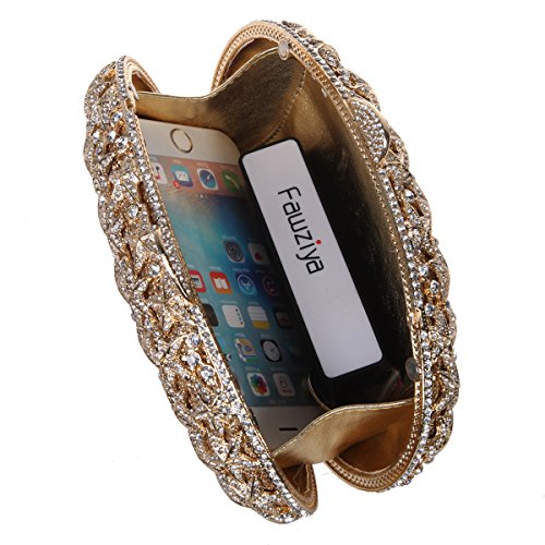 -. Feature : Diamonds:Fawziya use domestic grade A diamonds,12 cutting surface,a long-lasting gloss retention,one of leader in high class diamonds. / Hardware:Fawziya using K Gold plating process,each hardware is carefully selected,no scratches,no rust on the surface. / Fabrics:Fawziya use silk and satin,these materials are light,soft,colorful,shiny,noble and elegant. / The approximate size is 19(L)x6(W)x13(H)cm,Chain: 120 cm long chain removable. / Ideal for holding essentials like keys,mirror for touch-ups, lipstick and a iphone 5.