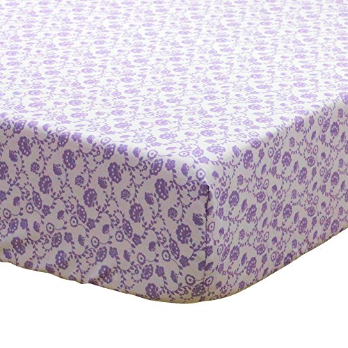-. Title : Zoe Purple Floral Cotton Crib Fitted Sheet