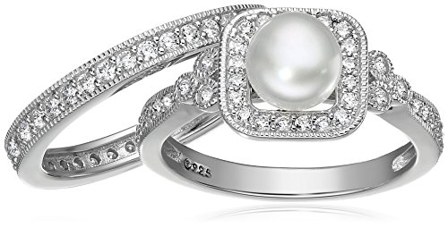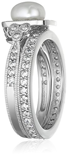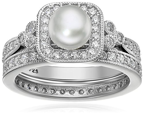 -. Title : Platinum Plated Sterling Silver Cubic Zirconia Freshwater Cultured Pearl Antique Two Piece Set Ring
