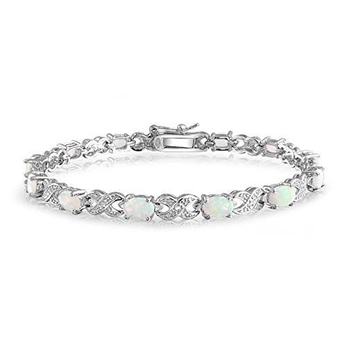 -. Title : ブリングジュエリー スターリングシルバー925製 人工オパール XOモチーフ テニスブレスレット