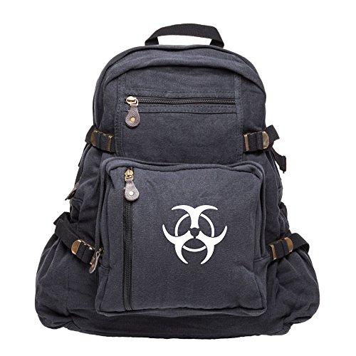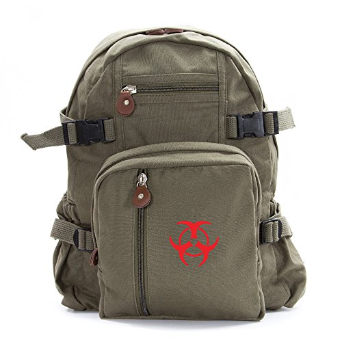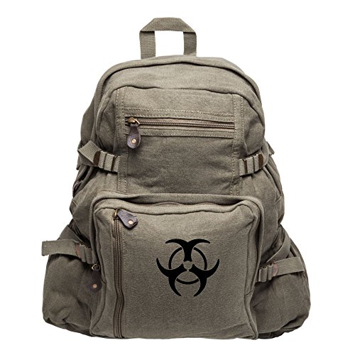 | (Grab A Smile)/Accessories/Luggage, Bags Travel/DIRECT FROM USA/Biohazard Symbol Canvas Military Backpack Travel School Book Bag |