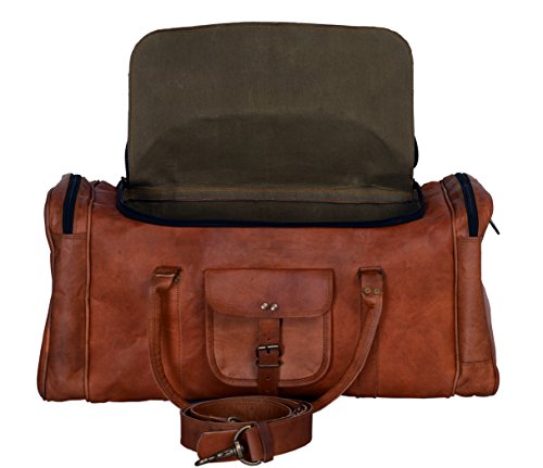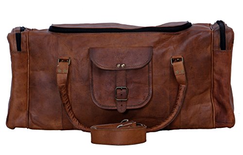 Studio : Komal's Passion Leather Publisher : Komal's Passion Leather Binding : Apparel Product Description Description: 100% genuine leather Duffel Gym / Sports / travel /cabin Bag with durable inner canvas lining and antique look accessories, Size 24" Length x 11" height x 9" Width. Multi utility bag can be used as a travel, picnic, gym and sports bag etc. Genuine handmade product made from chemical and dye free leather. Veg tanning using natural edible oil and Sun tanning used for obtaining shades. Bag gives a wonderfully unique and antique look with use. A nice travel bag option and a perfect companion and gift for your close ones. 0