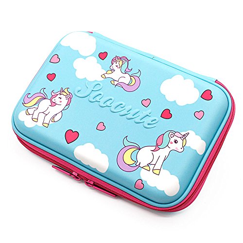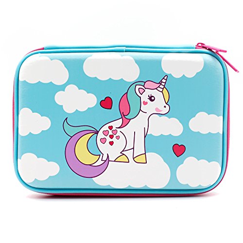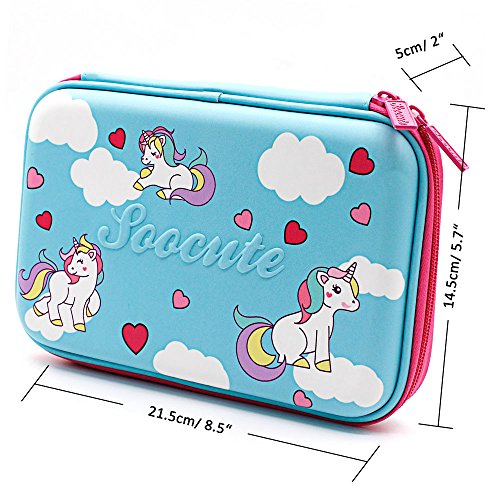 Cute Unicorn Blue Pencil Case School Girls Toddler Hardtop Pencil Pouch Pen Box With Compartment For Kids