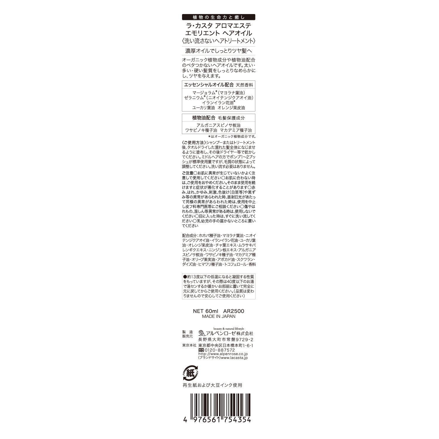 オーガニック植物成分はじめ、うるおいと柔軟性を与えるエモリエント効果と、髪への浸透性が高い植物油を独自のバランスで配合した濃厚なテクスチャーのヘアオイルです。オイルなのにベタつかず、つけた瞬間に髪へなじみ、しっとりとツヤのある柔らかい髪に仕上げます。