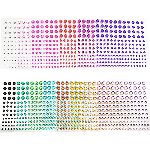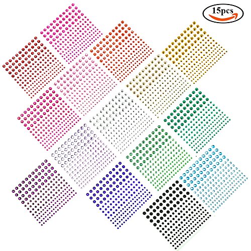 JPSOR 15Sets 3-6mm Multicolor Self-Adhesive Rhinestone Stickers Gemstones Sticker for Crafts with Bag